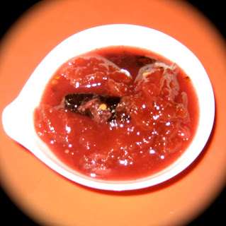 The plums, date, water and sugar were boiled together in a saucepan to the desired consistency (some people like it more fluid whereas other prefer a more viscous chutney). It took about 45 minutes. To a tsp of heated oil, I added the mustard seeds & the red chili and let the seeds splatter. Added the chutney to this and boiled for another 10 minutes. Turned off the heat added the juice of one quarter of a lime and mixed in the garam masala.